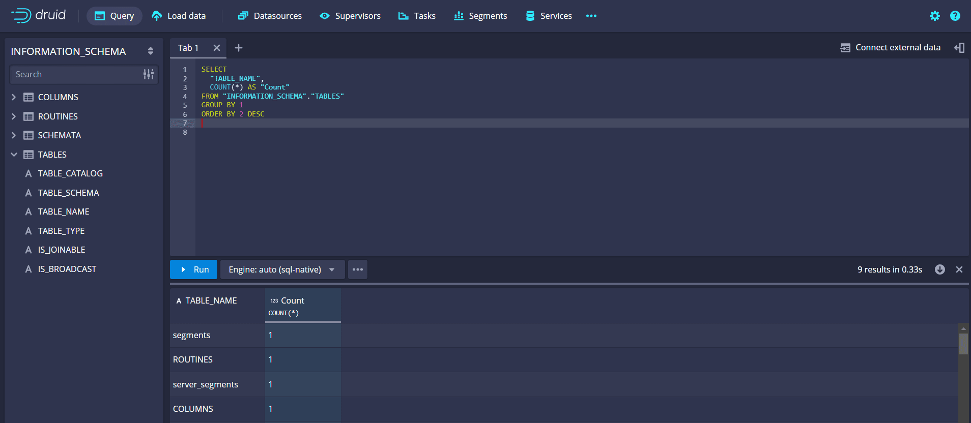 Use the Druid console or connect to Druid from your preferred BI tool to execute queries and visualize data.