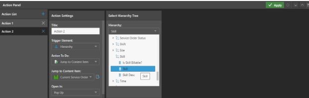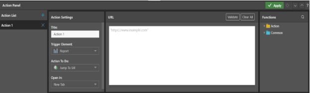 Configure actions:  An action can be used to open a particular content item or URL. To do this, we can set “ Action 1 “ with default settings. One-click on this would initiate an action that will lead you to a particular URL, provided the URL is written on the given area. To set the action, click on the “ Apply” button.