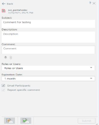 A submit button will only pop up after you write a comment. We can send emails, messages, and comments to other users. An email participant button is used to send notifications. We can also send voice messages. After we save the data discovery, we can enable or disable the “report-specific comment” button. The enabling of this button is called Discover-Specific Conversation, and the disabling is called Model conversation.