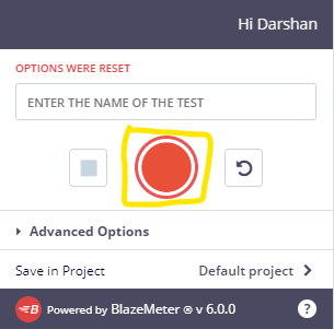 Click on the Blaze Meter chrome extension. A toolbox will be visible. Open the application where you want to record the scripts for Jmeter. Click on the record button to start.