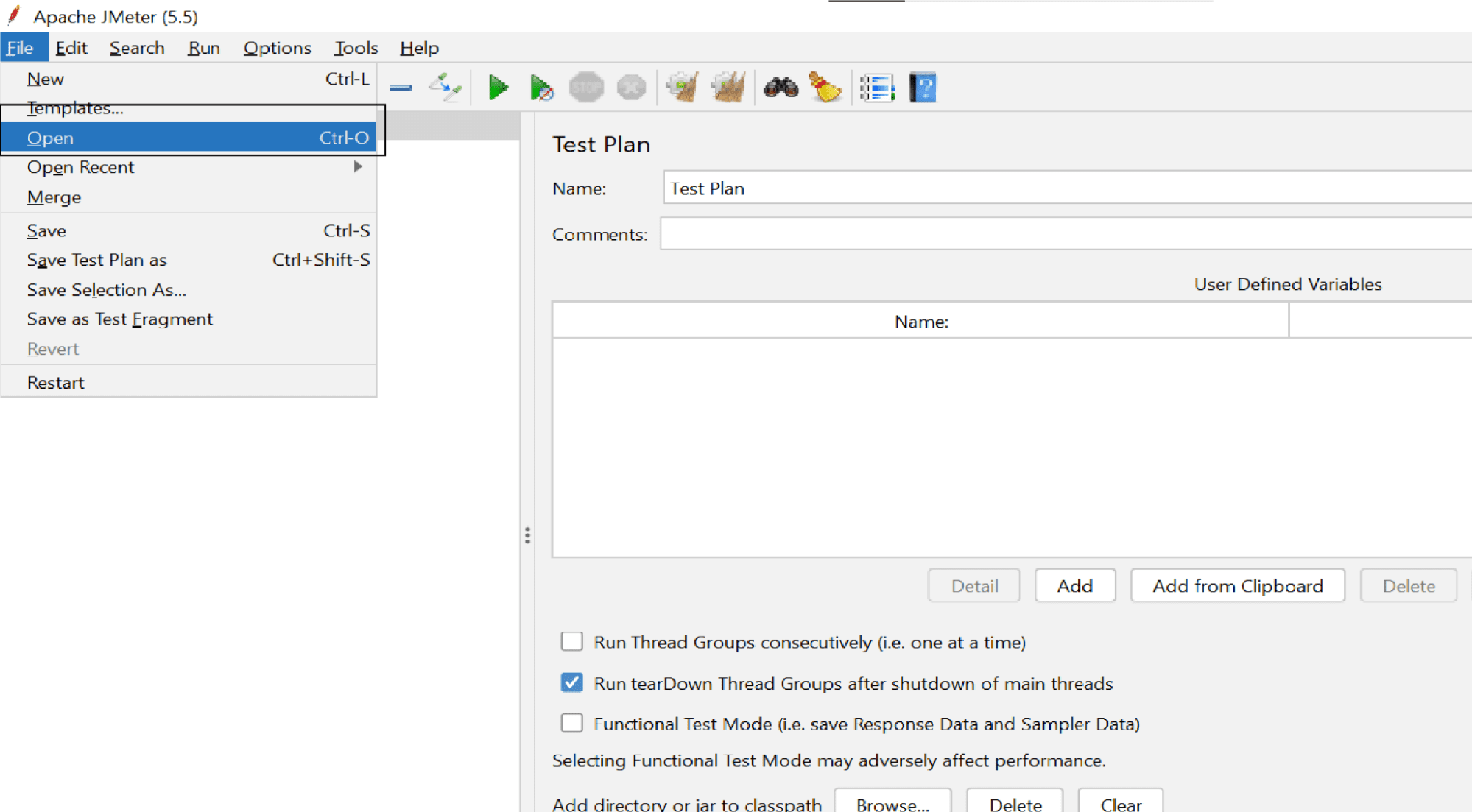 Select the generated .jmx file and click on open